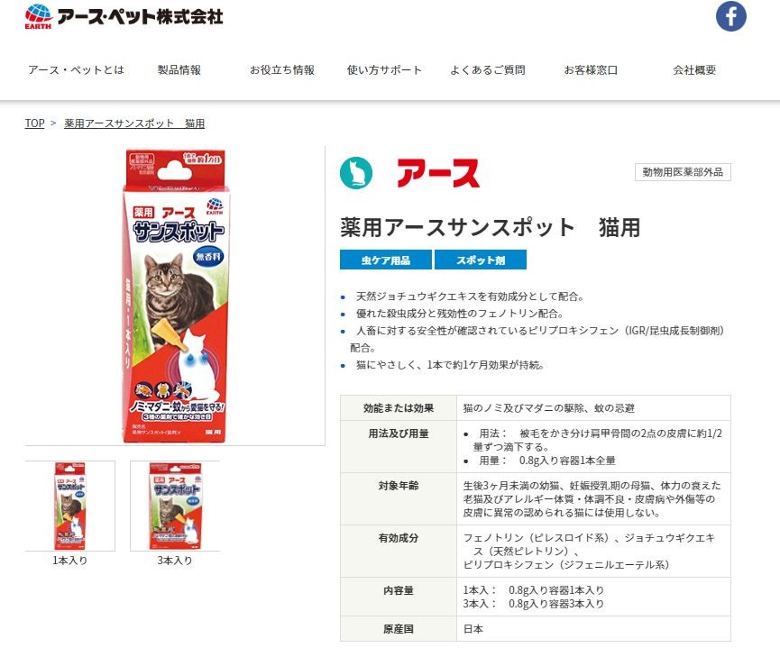 薬用アースサンスポット 猫用 0 8g 3本入り アース ペット の口コミ レビュー 評価点数 ものログ